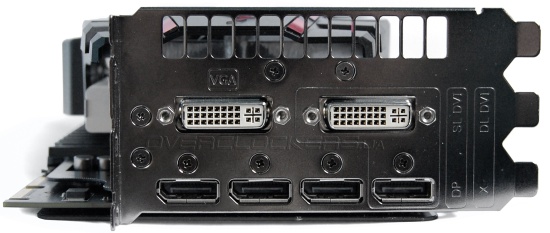 Набор разъемов на задней панели такой: два DVI и четыре Display Port.