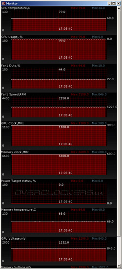 Еще ASUS Matrix поражает обилием отслеживаемых и регулируемых параметров — от самых разных напряжений до температур всех компонентов. Потенциал для экстремального разгона при столь выдающихся результатах на стоковом охлаждении тоже должен быть очень высоким. Да и сама видеокарта изначально ориентирована на такие режимы использования. Плата сконструирована из расчета на стрессовые нагрузки. Производитель даже позаботился о дополнительном радиаторе на случай установки стакана под жидкий азот.