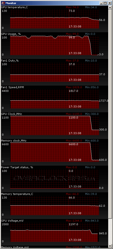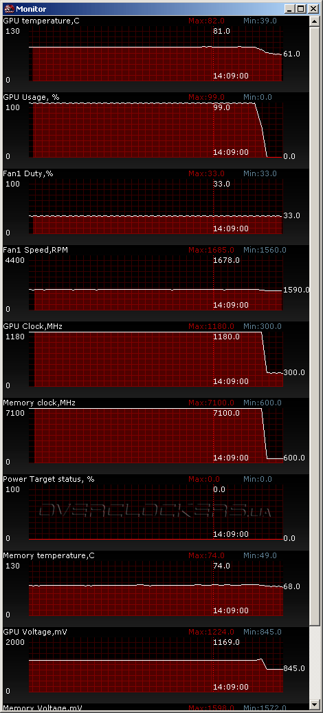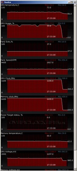 На самом деле наша видеокарта могла работать на заводских частотах и при еще меньшем напряжении. Так что достигнуть комфортного акустического режима при ручных настройках не составит труда.