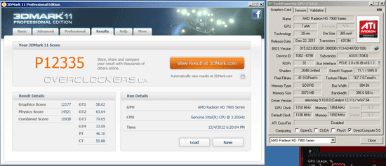 Результаты разгона впечатляют. Но, возможно, такие высокие показатели удалось достичь не только благодаря техническому совершенству ASUS, но и благодаря улучшенному разгонному потенциалу GPU Tahiti новой ревизии. С большой долей вероятности можно говорить и об определенном отборе чипов для топовых карт линейки Matrix.