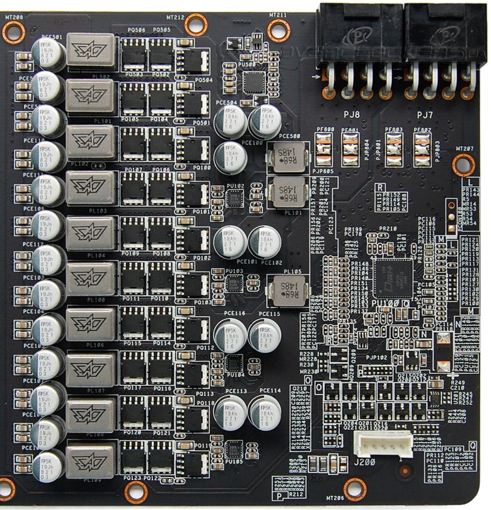 Всего на карте насчитывается 12 фаз питания. Из них восемь приходится на систему питания графического процессора.