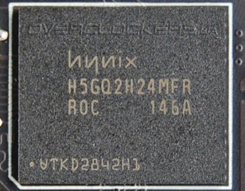 Объем видеопамяти стандартный — три гигабайта. Распаяно 12 микросхем Hynix H5GQ2H24MFR R0C.