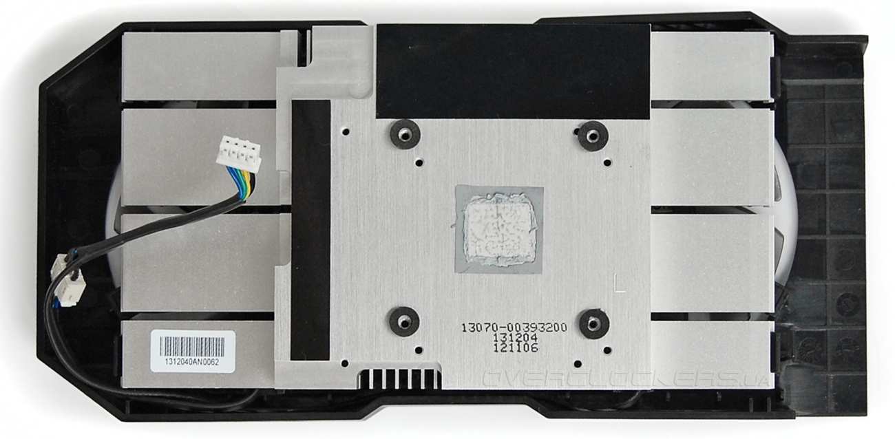 Радиатор системы охлаждения цельный, выполнен из алюминия. Вместо традиционных термопрокладок над чипами памяти имеются черные диэлектрические наклейки.