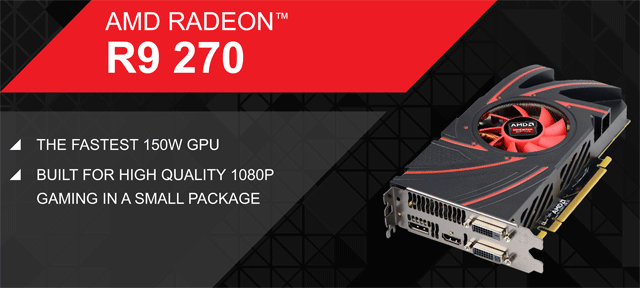 Более серьезные отличия у Radeon R9 270X и Radeon R9 270 в дизайне платы. Младшее решение базируется на упрощенном дизайне PCB при более компактных размерах и с более простым охлаждением. Зато снижение частоты ядра и рабочего напряжения позволило снизить уровень энергопотребления до 150 Вт. Компания называет новую карту самой быстрой в таком классе энергопотребления и говорит о превосходстве до 35% в процессорной мощности относительно Radeon HD 7850.