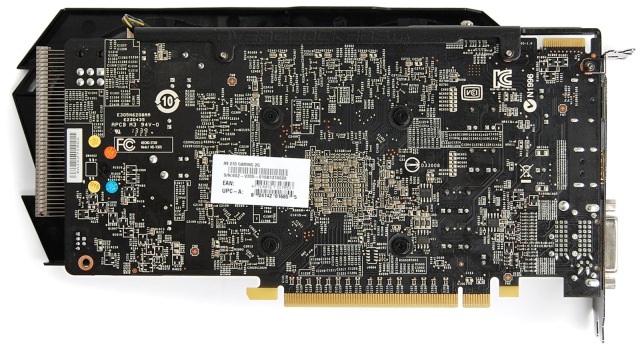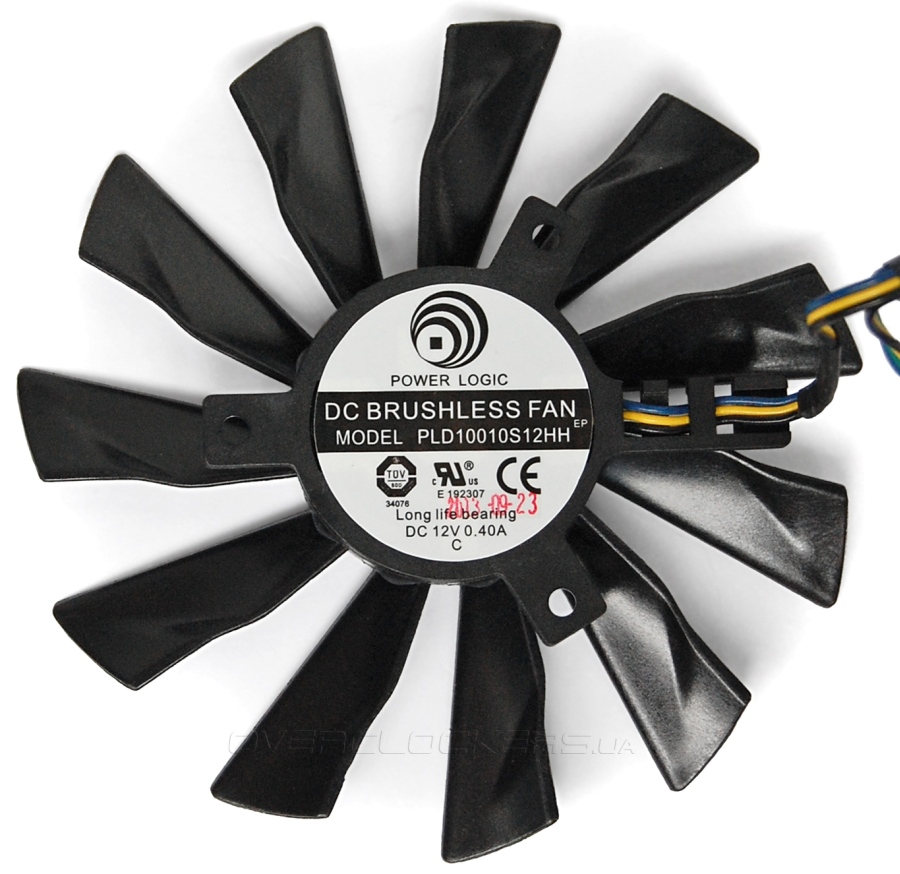 На вентиляторах экономить не стали. Обдувает карту парочка Power Logic PLD10010S12HH типоразмера 100 мм (реальный размер лопастей примерно 95 мм). Вентиляторы такого диаметра используются и в более мощных картах MSI Gaming, вплоть до топовых моделей.