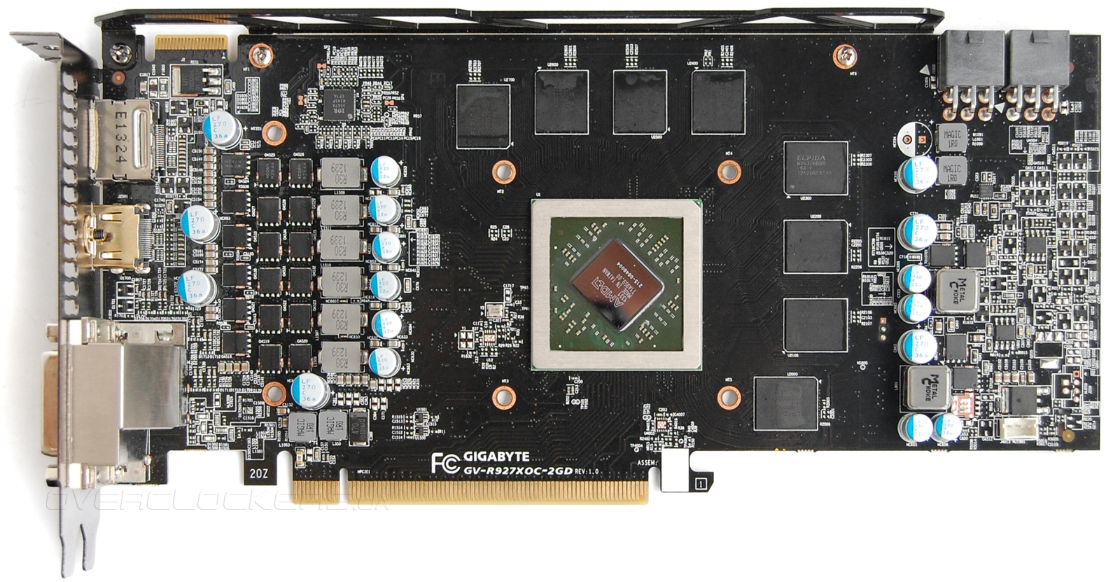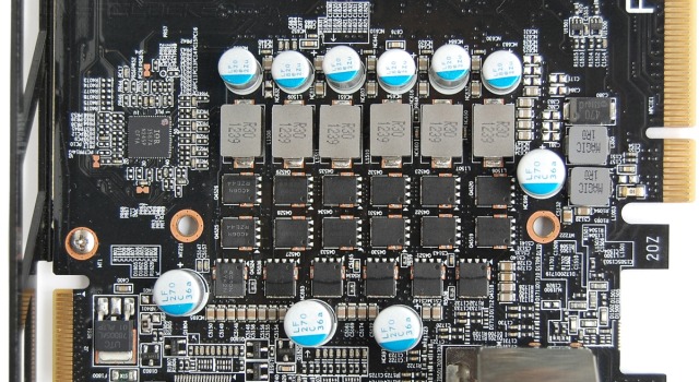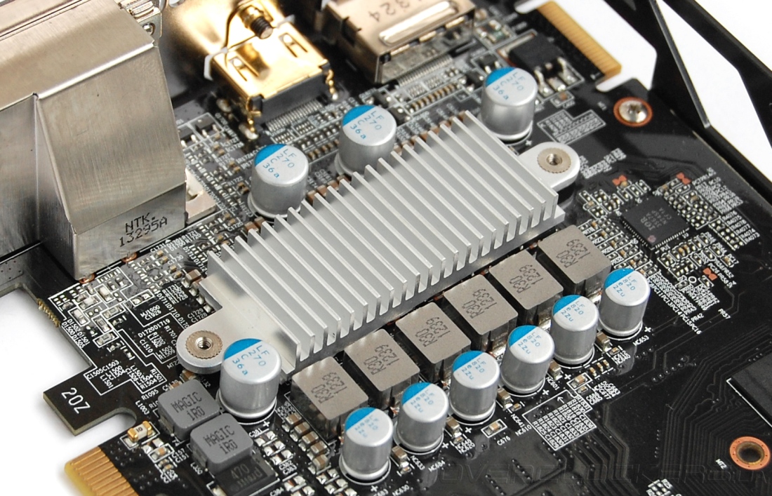 На системе охлаждения сходства со старыми Radeon от Gigabyte заканчиваются. Плата не повторяет дизайн Radeon HD 7870. Она заметно компактнее, но монтаж элементов очень плотный. Произведена карта в соответствии с внутренним стандартом компании Ultra Durable VGA, который предусматривает использование высококачественных электронных компонентов и увеличенную толщину медных слоев платы.
