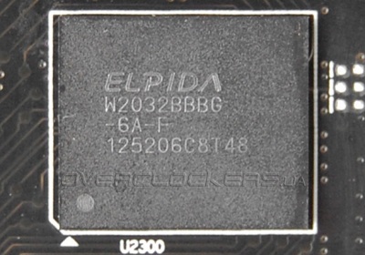 Два гигабайта памяти набраны восемью микросхемами Elpida W2032BBBG-6A-F.