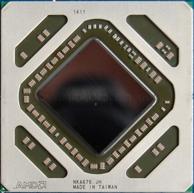 Чип Tahiti окружен массивной защитной рамкой. На поверхности кристалла нет никаких надписей, вся маркировка на рамке.
