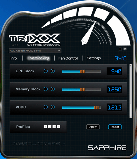 Управление питающим напряжением GPU доступно только через родную утилиту Sapphire Trixx.