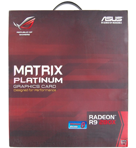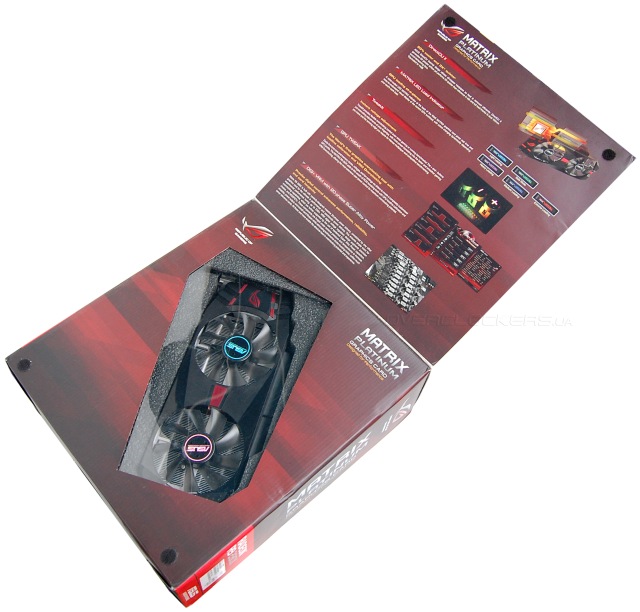 Видеокарты Matrix являются вершиной инженерной мысли конструкторов ASUS. И высокий статус данного продукта проявляется даже в его упаковке — большая коробка с фирменным стилем оформления.