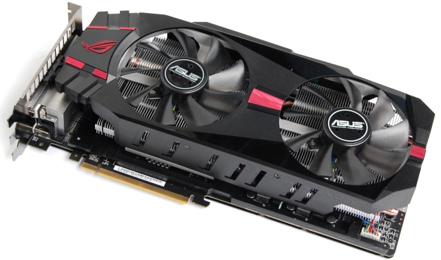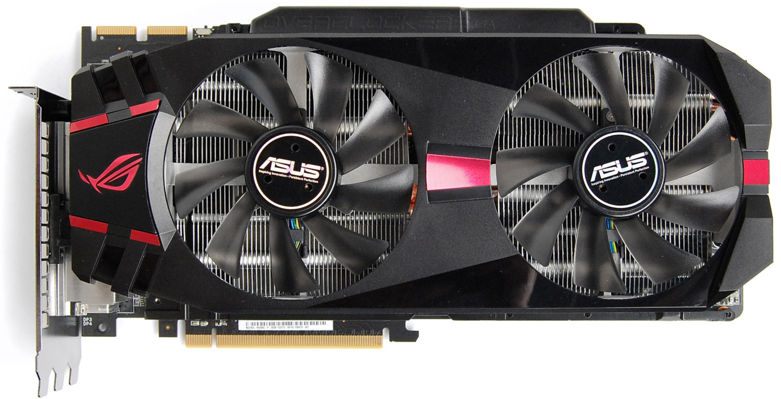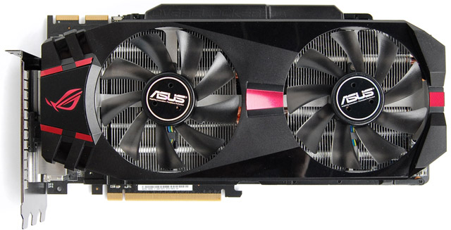 Мощная система охлаждения с большими вентиляторами занимает целых три слота. Длина ASUS укладывается в 28 сантиметров. По ширине карта больше любой обычной версии — 12 с половиной сантиметров до разъема PCI Express. Во внешнем дизайне чувствуется преемственность с остальными продуктами серии Republic of Gamers.