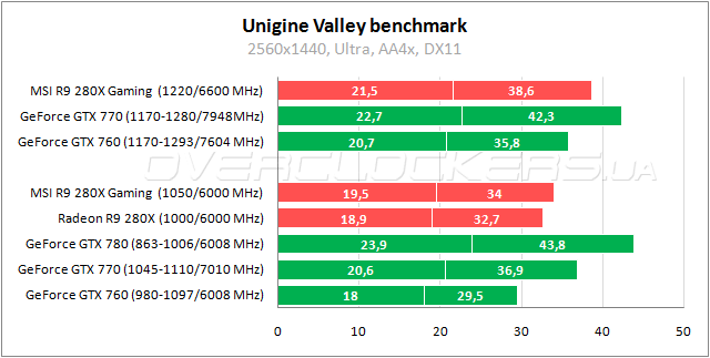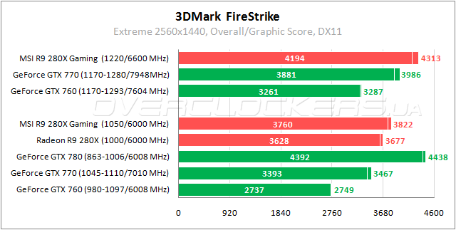 Radeon R9 280X уступает GeForce GTX 770 примерно 6–10% и на 8–13% обгоняет GeForce GTX 760. MSI Gaming в номинале лучше референса на 4%.