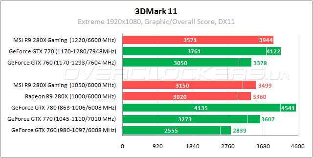 Radeon R9 280X вырывает победу у GeForce GTX 770, обгоняя соперника на 6–9%. С разгоном удается обойти и GeForce GTX 780.