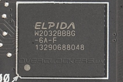 Четыре гигабайта памяти набраны 16 микросхемами Elpida W2032BBBG-6A-F.