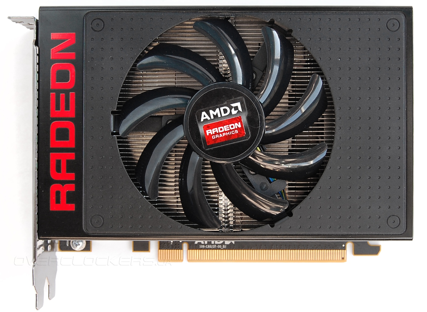 Боковые грани имеют крупные прорези. На лицевой и боковой стороне корпуса присутствуют большие надписи Radeon.