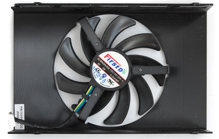 Вся эта конструкция продувается вентилятором стандарта 92 мм с сильно изогнутыми лопастями для повышения его эффективности. Маркировка — FirstD FDC10H12D9-C