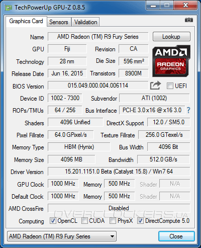 Перед тем, как перейти к результатам тестов, отметим, что мы обновили данные для старого флагмана Radeon R9 290X. Все участники со стороны AMD, включая Fury X протестированы на видеодрайвере ATI Catalyst 15.7.1. Ранее было небольшое расхождение между версиями программного обеспечения, что привело к чрезмерно высокому преимуществу Radeon R9 390/390X над предшественником в отдельных тестовых приложениях. Так что данный материал расставит все точки над «i» в этом вопросе. Что касается героя обзора, то он работает пока только с ATI Catalyst 15.8 beta. Подробнее об участниках тестирование дальше.
