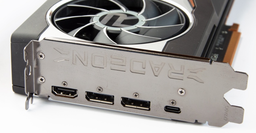 Толщина видеокарты не превышает двух слотов, в чем и кроется главное конструктивное отличие от Radeon RX 6800 XT. На заднюю панель вынесены порты HDMI, два Display Port и Virtual Link Type C.