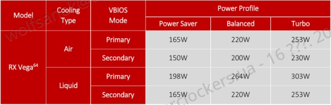 Для наглядности приведем еще таблицу с официальными данными по лимитам мощности в разных режимах и при разных прошивках. Попутно в ней указаны и данные для топовой версии Liquid Cooled.