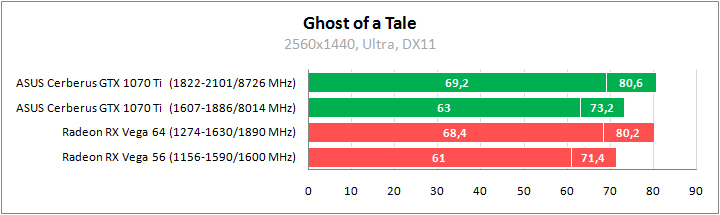 В номинале ASUS GeForce GTX 1070 Ti показывает минимальное преимущество над Radeon RX Vega 56. Разгон обеспечивает ускорение 11%, что позволяет нагнать Radeon RX Vega 64.