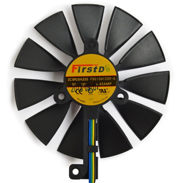 Обдувается радиатор парой крупных вентиляторов с диаметром крыльчатки 9 см. Их маркировка FirstD FDC10U12S9-C.