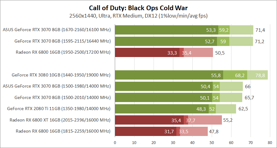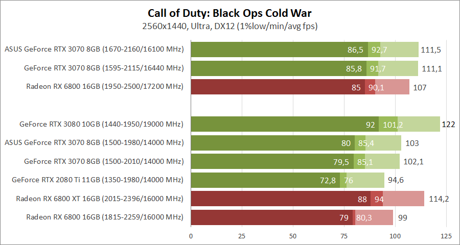 В Cold War герой обзора быстрее GeForce RTX 2080 Ti и Radeon RX 6800.