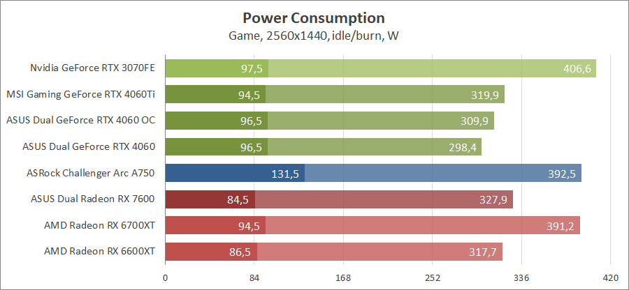 Потребление системы с новой картой небольшое на фоне других продуктов.