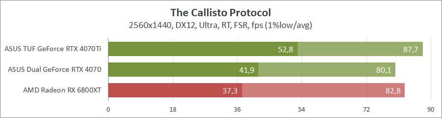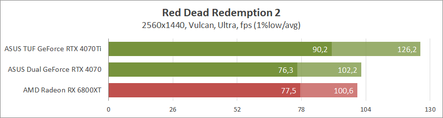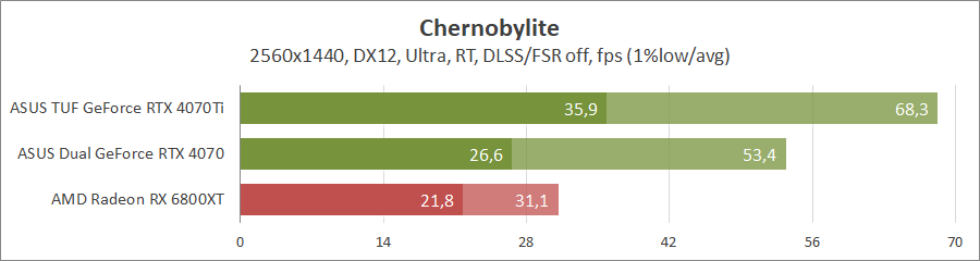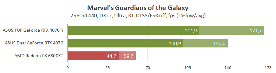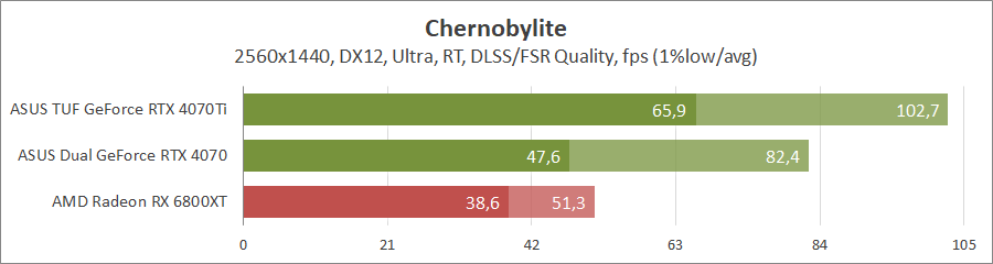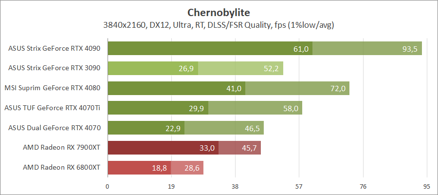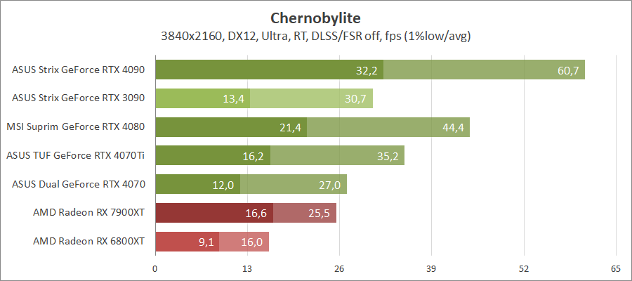 Хорошо оптимизированная под карты Radeon игра не оставляет никаких шансов продуктам на ядре Ada Lovelace, даже с активированием трассировки лучей.
