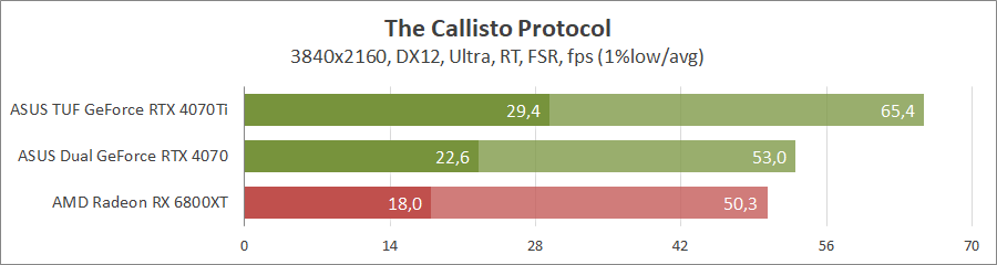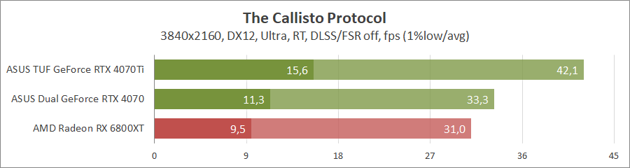 Тяжелый проект, с максимальным качеством и только с FSR 2 можно играть лишь на GeForce RTX 4070 Ti, со всеми остальными геймплей будет желать лучшего.