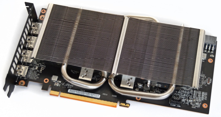 Даже при внешнем осмотре заметны толстые тепловые трубки, выглядывающие из-под кожуха. В углу присутствует 8-контактный разъем питания.