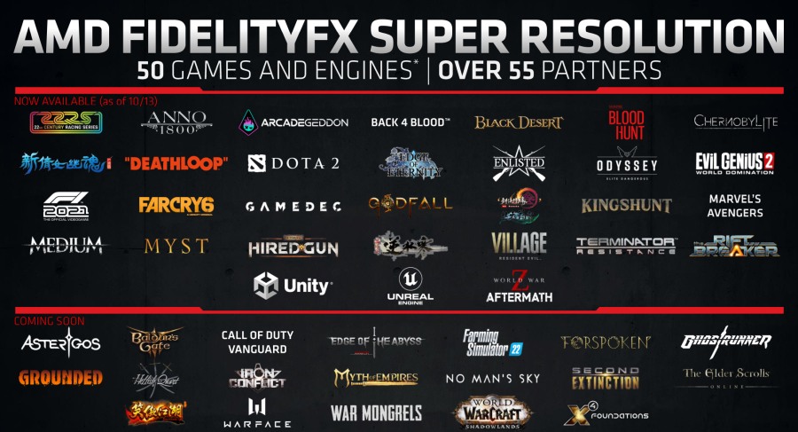 Компания AMD активно развивает инициативу AMD FidelityFX, помогая разработчикам внедрять свои технологии в игры. В их числе усиление резкости AMD FidelityFX CAS, оптимизированный вариант Variable Rate Shading и масштабирование AMD FidelityFX Super Resolution (FSR). Последняя технология помогает увеличить производительность в высоких разрешениях при тяжелых настройках, к примеру, в Far Cry 6 с трассировкой (наш обзор). Список игр, поддерживающих AMD FSR, приближается к 30, вскоре к ним присоединятся Call of Duty: Vanguard, Baldur’s Gate 3 и другие проекты.