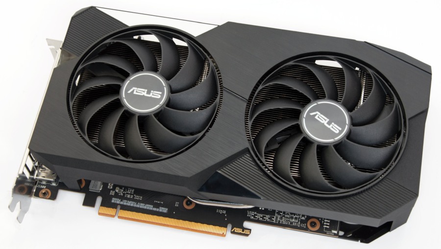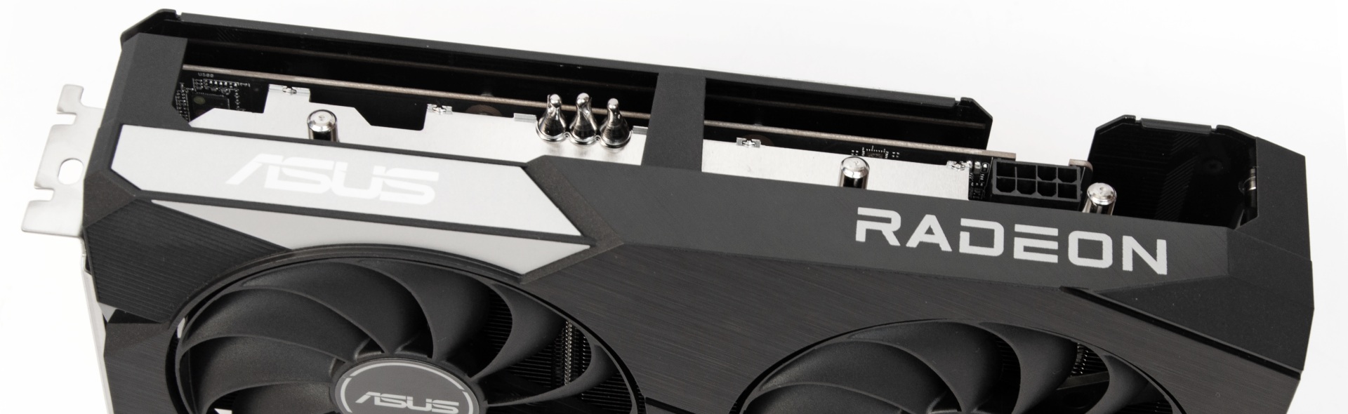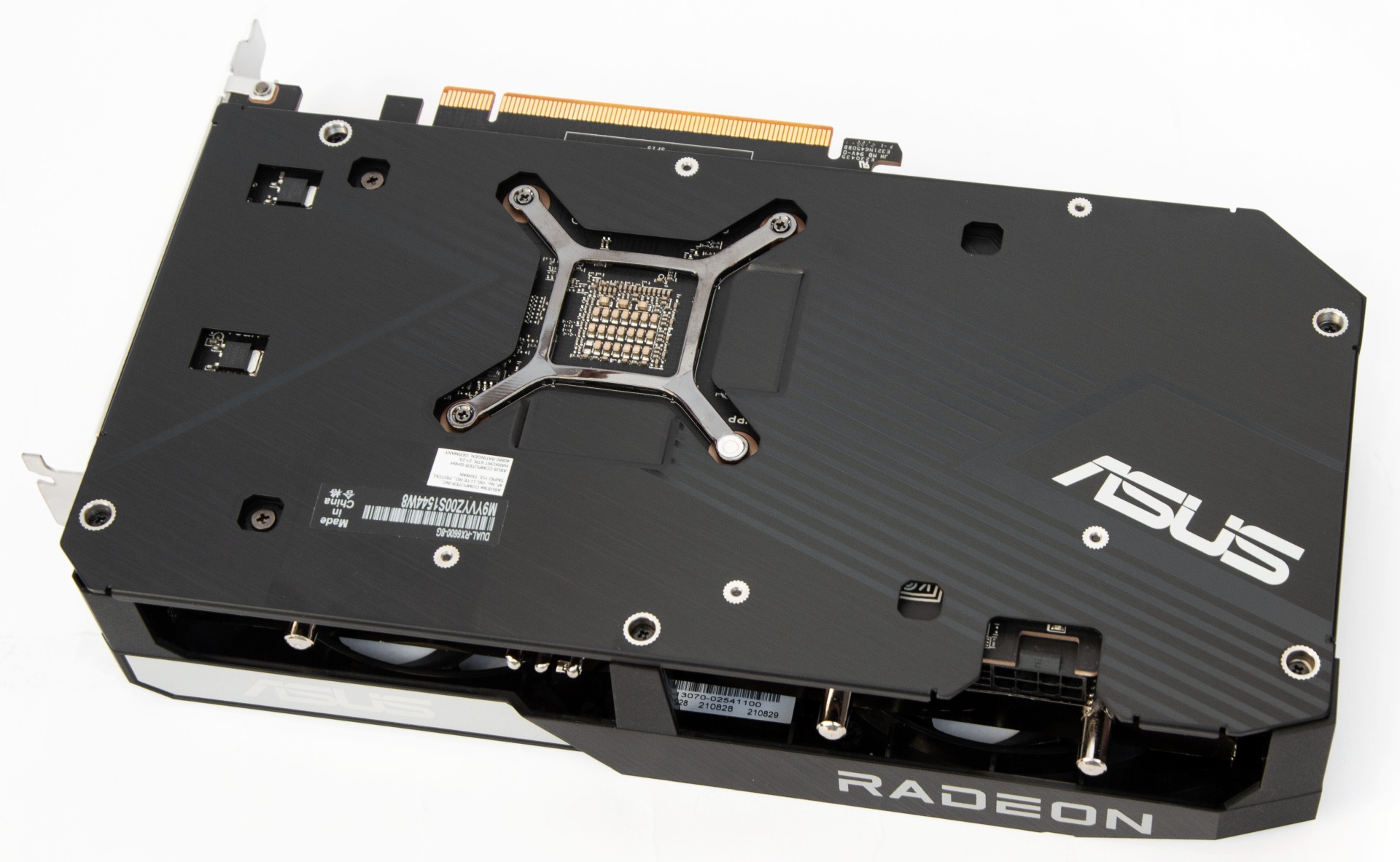 Перед нами полная копия старшей модели ASUS DUAL-RX6600XT-O8G. Используется такое же охлаждение. Кулер накрыт кожухом с поверхностью, стилизованной под шлифованный металл. Длина 24 см.