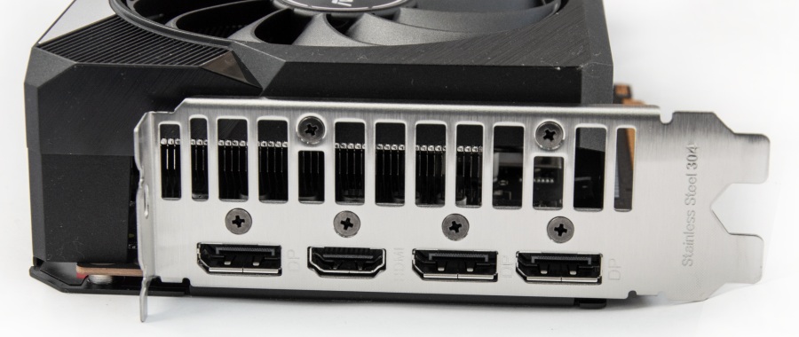 Для вывода изображения сзади расположено три порта DisplayPort и один HDMI.