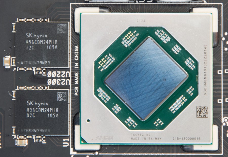 GPU Navi 23 оперирует 1792 стрим-процессорами. Восемь гигабайт памяти набрано четырьмя микросхемами SK hynix H56CBM24MIR.