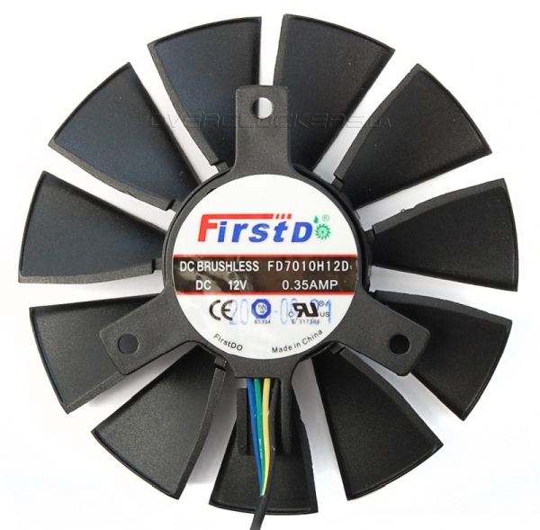 Используется пара вентиляторов диаметром 80 мм (реальный размер крыльчатки около 75 мм). Их маркировка FirstD FD7010H12D.