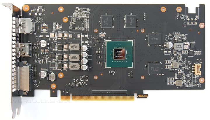 Печатная плата полностью повторяет дизайн старшей модели ASUS Expedition GeForce GTX 1050 Ti, что вполне ожидаемо. Подсистема питания GPU использует три фазы. Распаяны качественные электронные компоненты, которые можно наблюдать и в более дорогих графических продуктах от ASUS.