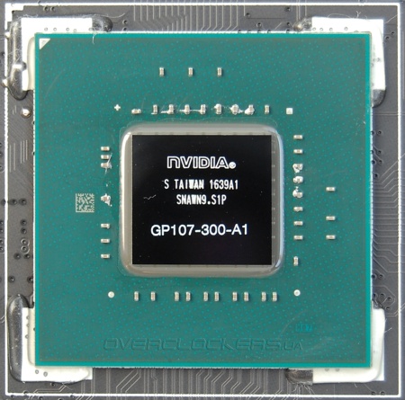 Полная маркировка процессора GP107-300-A1. Его возможности представлены 640 потоковыми ядрами CUDA при 40 текстурных блоках и 32 ROP.