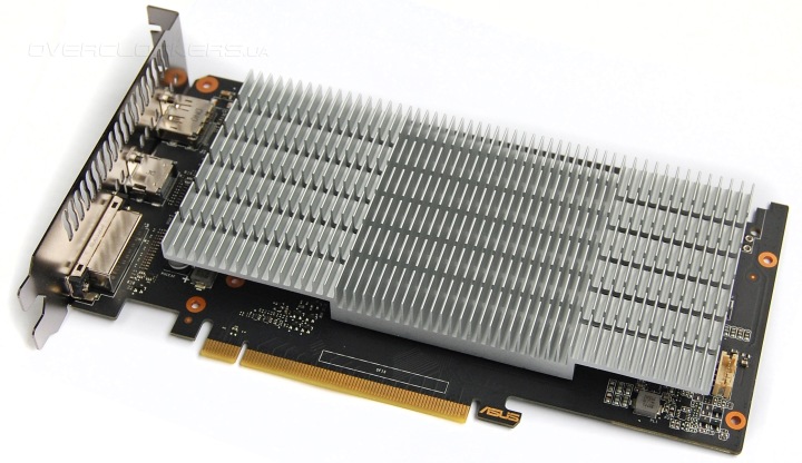 Цельный алюминиевый радиатор обходится без тепловых трубок или медного основания. С учетом низкого уровня TDP мы увидим и более простое охлаждение на видеокартах данной серии.