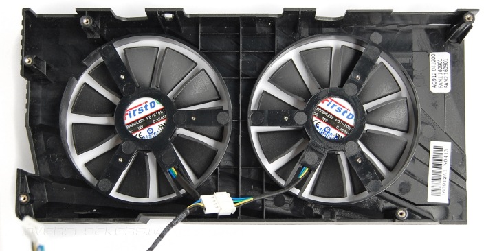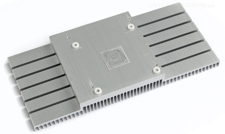 Пластиковый кожух с вентиляторами легко снимается без полного разбора видеокарты — он фиксируется винтами независимо от радиатора. Сам ребристый радиатор является довольно простым по своей конструкции, но крупным по габаритам.