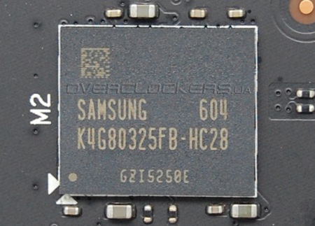 Четыре гигабайта памяти набрано микросхемами Samsung K4G80325FB-HC28.