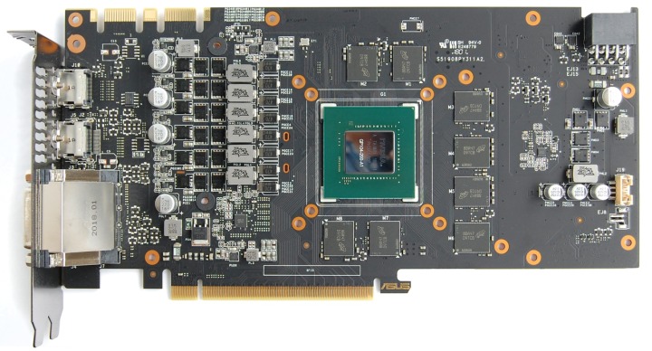 Печатная плата напоминает PCB DUAL-GTX1060-6G с усиленной системой питания.