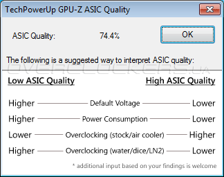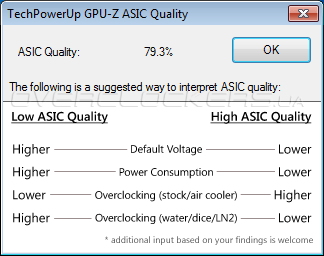 Утилита GPU-Z определила значения ASIC Quality в 79,3% и 74,4% соответственно для версии с 1 ГБ и 2 ГБ.