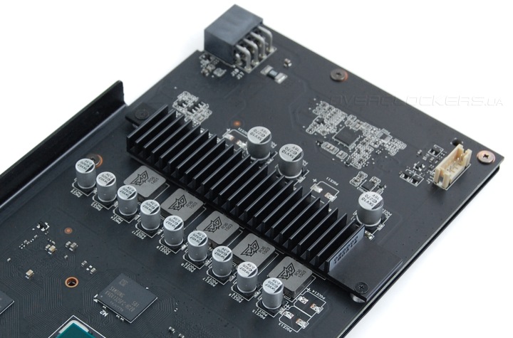 У силовых компонентов узла питания имеется свой ребристый радиатор. Сбоку, к плате, прикручено ребро жесткости.