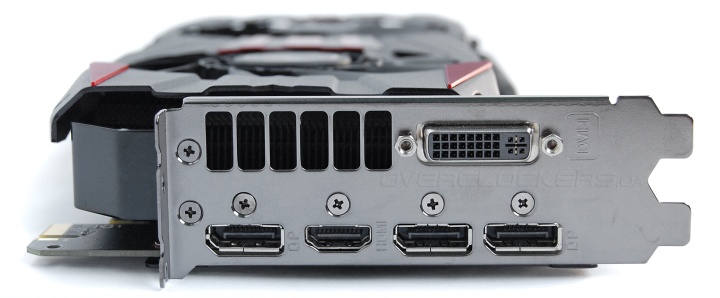 Набор интерфейсных разъемов стандартен: три DisplayPort, один HDMI и DVI.
