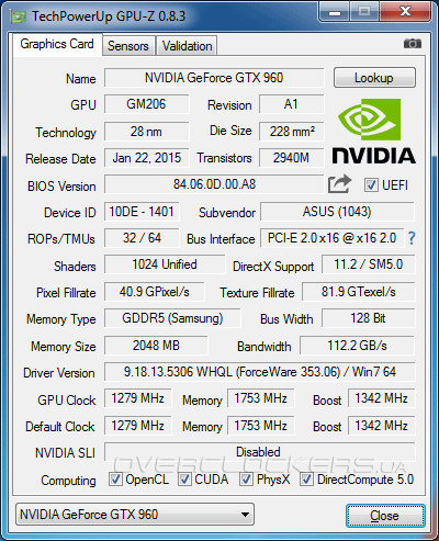 ASUS выигрывает до 7% относительно референсной версии GeForce GTX 960 и уступает лишь 4–5% более мощному GeForce GTX 770. В номинале удается обойти Radeon HD 7970 при минимальном отставании от Radeon R9 285. Прирост при разгоне на уровне 9%.