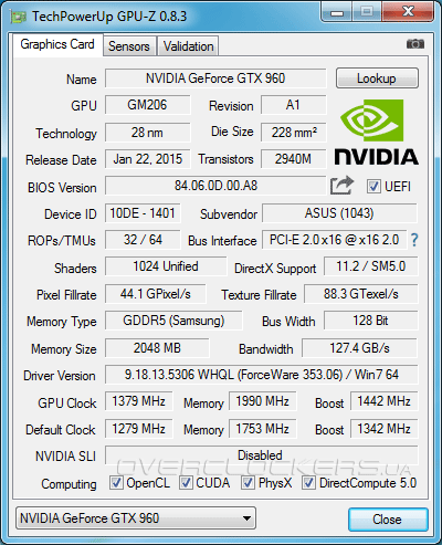 По экономичности GeForce GTX 960 вне конкуренции. В разгоне ASUS потребляет меньше напарника по серии, что связано с отсутствием софтвольтмода.