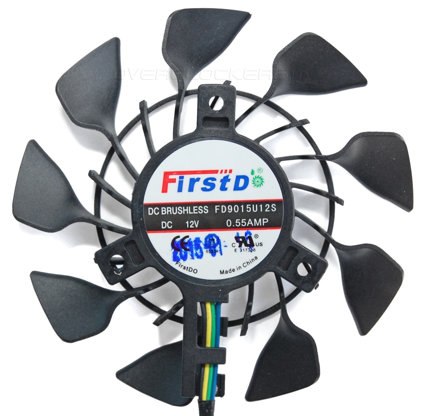Вентилятор особой формы, которая используется не только в компактных видеокартах ASUS, но и в некоторых полноформатных моделях. Внешнее кольцо крыльчатки состоит из обычных лопастей, создающих нисходящий поток, а внутри кольца перпендикулярные «лепестки», прогоняющие воздух сквозь боковые секции. Таким образом один вентилятор работает как осевой и радиальный, обеспечивая эффективный продув всей охлаждающей конструкции.
