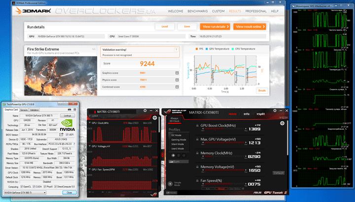 Программа ASUS GPU Tweak II предоставляет максимум возможностей для разгона, позволяя регулировать больше параметров Matrix относительно других утилит. В частности, доступно программное управление напряжением памяти GDDR5. Если использовать MSI Afterburner, то доступны регулировки частот и софтвольтмод GPU. Для простого практического разгона этих возможностей более, чем достаточно.