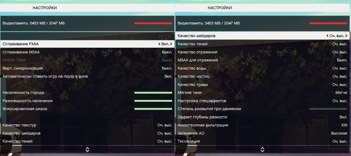 Все настройки графики ограничены уровнем «очень высоко», тени «мягче». Для большинства параметров это максимальное значение, для некоторых на один уровень ниже максимума. Выбрано простое сглаживание FXAA. Дополнительные настройки не задействованы.