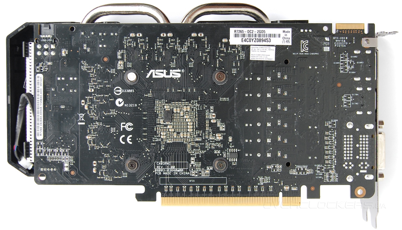 А вот печатная плата явно наследует предшественников. Вполне ожидаемо тут не стали ничего менять. Различия с ASUS HD7850-DC2-2GD5-V2 минимальны.